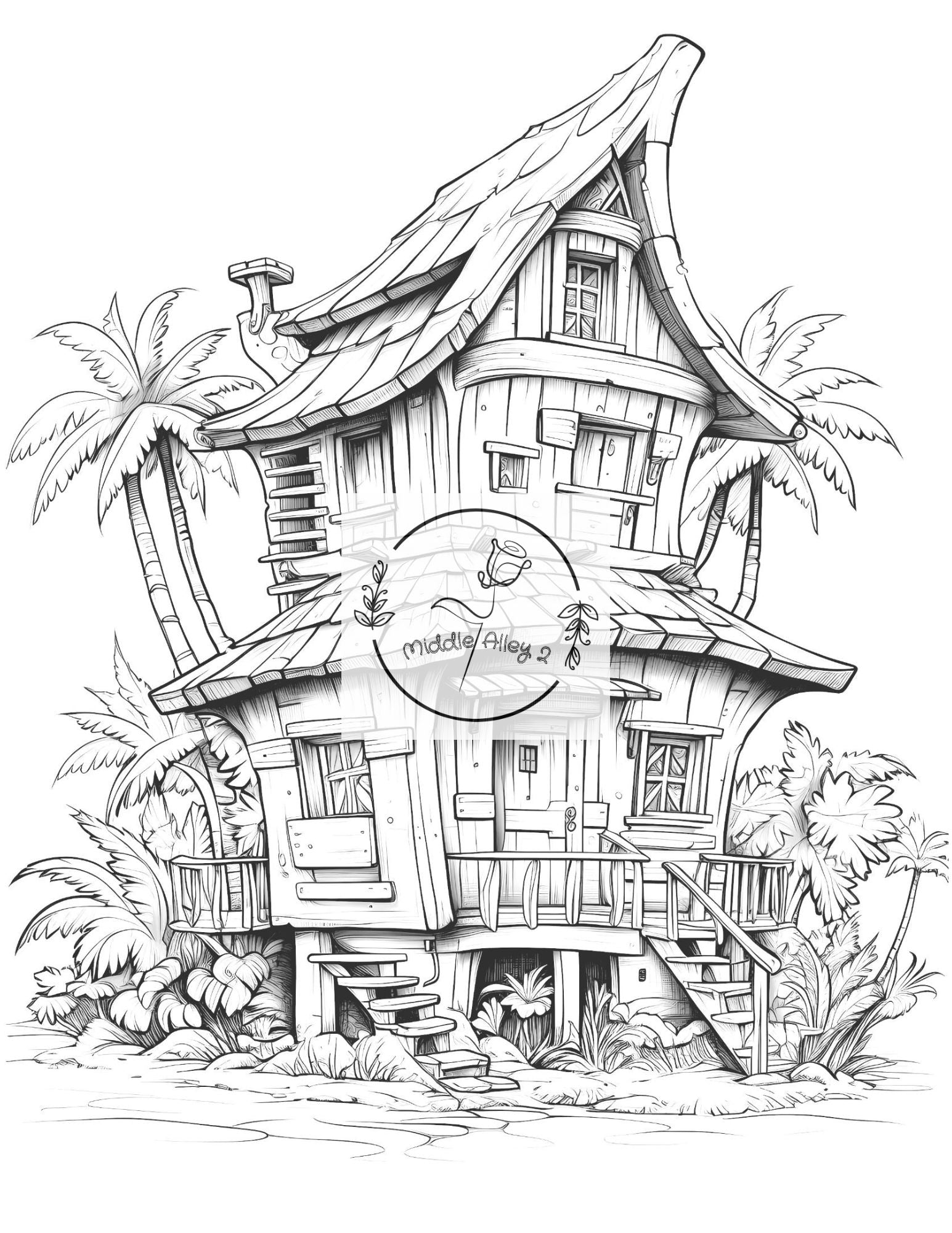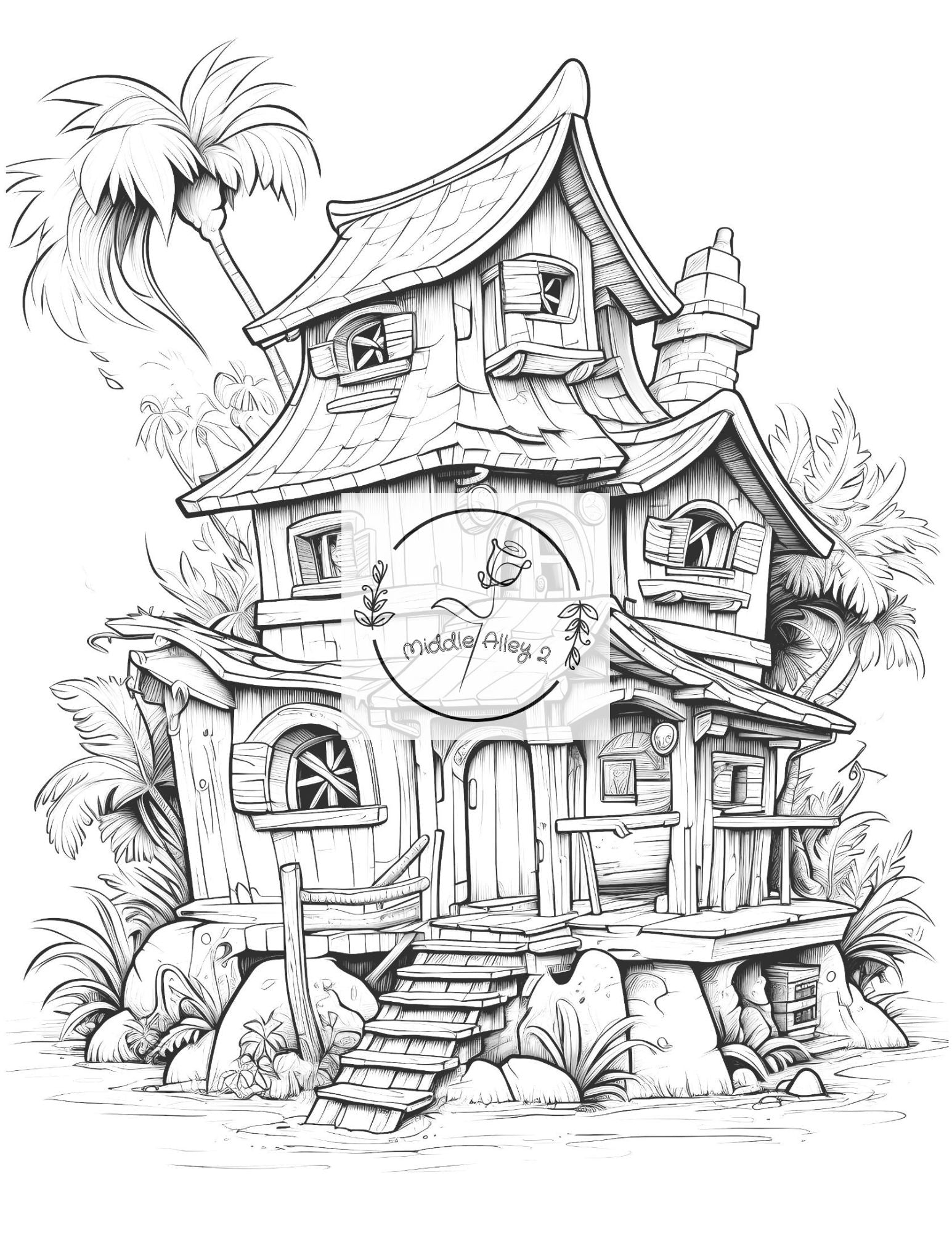 - ✅ 50 einzigartige Ausmalbilder mit verrückten, fröhlichen Fiji-Häusern