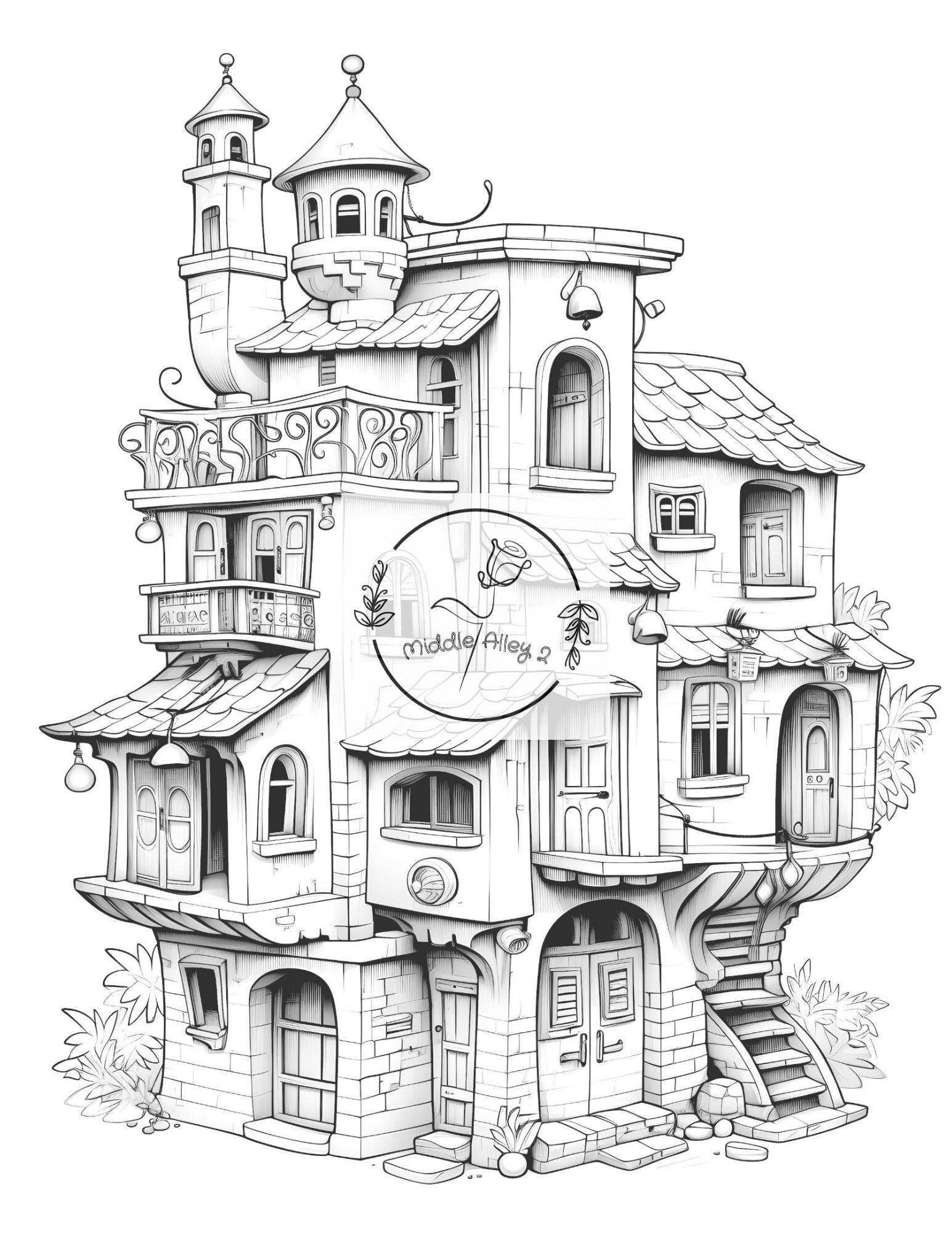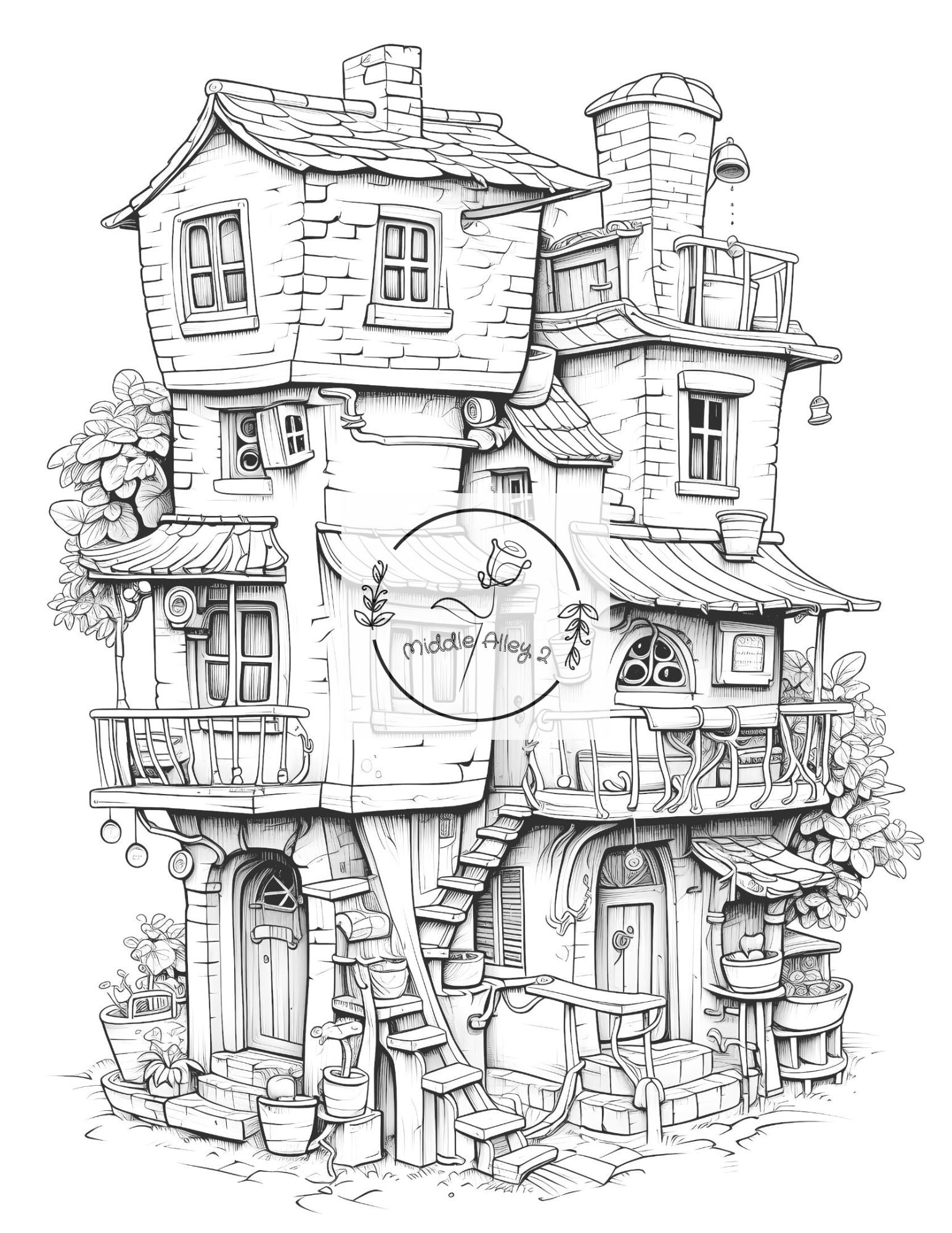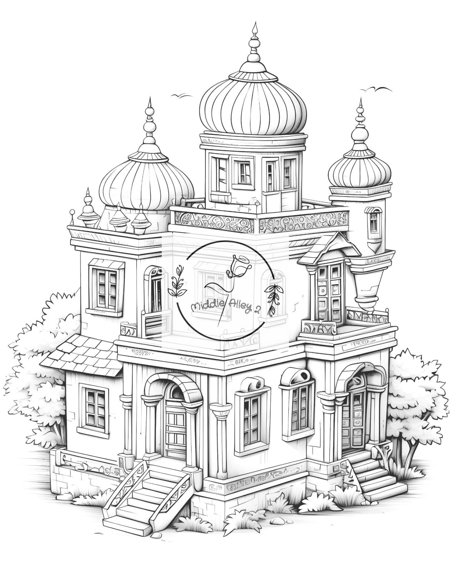 • 50 kreative Ausmalbilder mit schrägen, liebevoll gestalteten Indien-Häusern