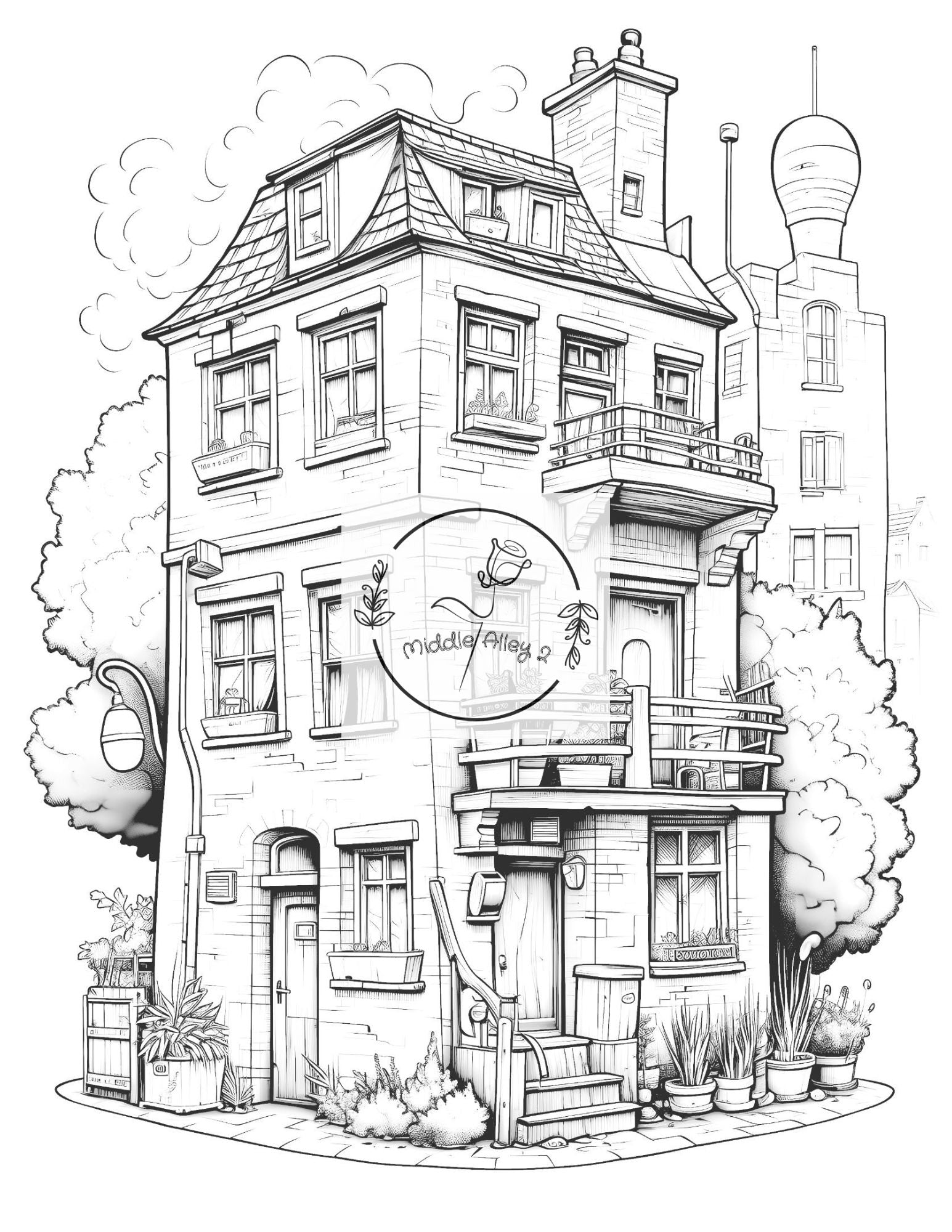 • 50 einzigartige Ausmalmotive mit skurrilen & liebevoll gestalteten Häusern